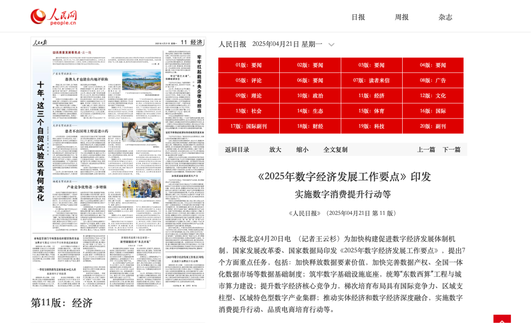 今年4月,国家发展改革委、国家数据局印发《2025年数字经济发展工作要点》,明确要提升数字经济核心竞争力,促进科技创新和产业创新深度融合,梯次培育布局具有国际竞争力、区域支柱型、区域特色型数字产业集群;深入实施数字化转型工程,协同构建技术模式和商业模式,“一链一策”推进重点行业数字化转型,搭建转型公共服务平台,培育数字化转型服务商。