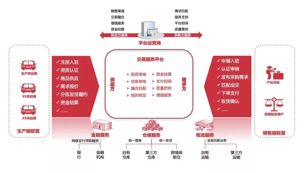 通过对履约、物流与仓储环节的系统整合,实现订单从生成到交付的全过程协同;通过引入产业金融与信用体系设计,缓解中小企业在交易与履约过程中的资金压力;通过运营与数据服务设计,持续优化供需匹配与资源配置效率。